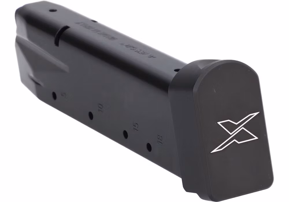 20-round steel magazine for the SIG SAUER P226-XFIVE pistols chambered in 9mm. Featuring a durable aluminum basepad with a front serration for added grip when h