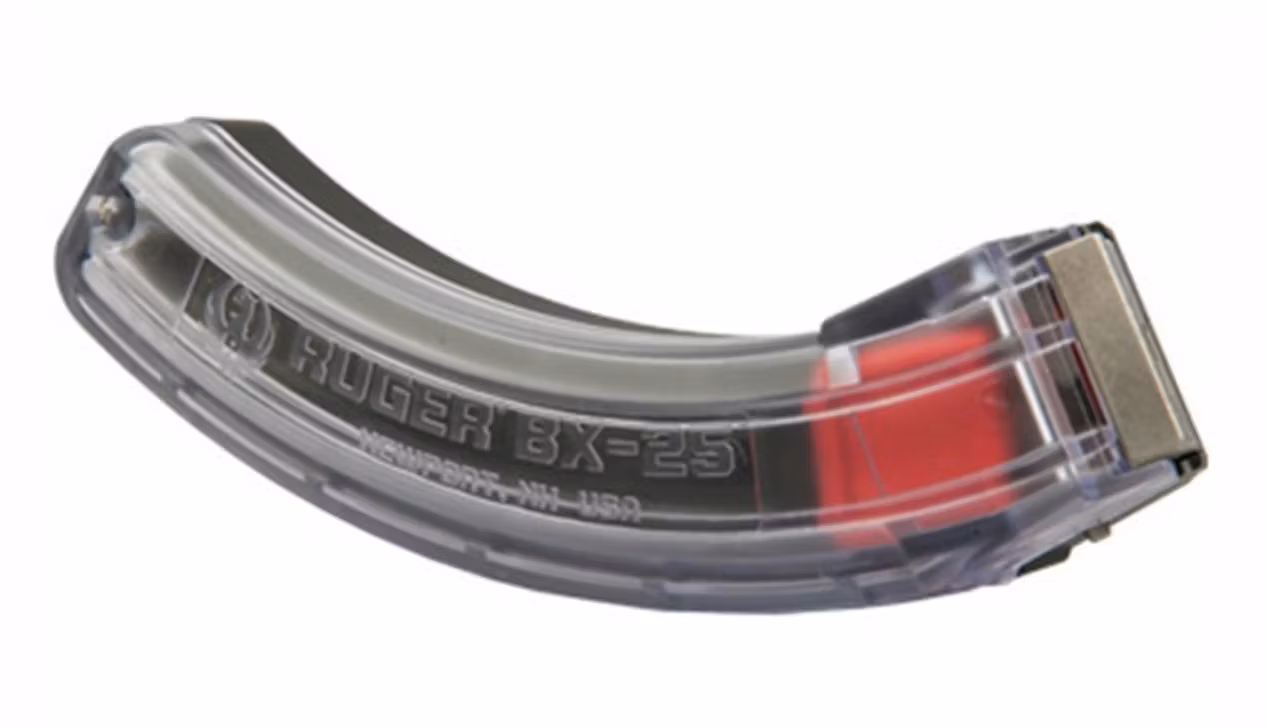 Ruger BX-25 Transparent magasin för .22lr med 25-skotts kapacitet. Tillförlitlig matning, robust konstruktion – perfekt för sportskytte och plinking.