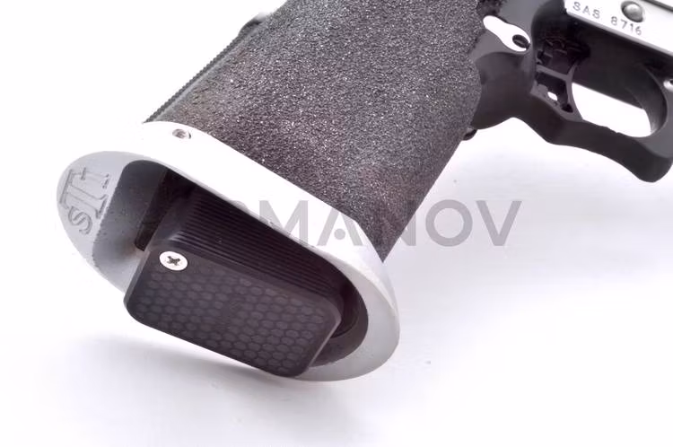 This magazine base pad for 2011 has high gripping force thanks to deep side grooves so handling is much more secure and precise. This also allow a speed reload and support one-handed weapons manipulation. Beautiful honeycomb style design. Simple screw to asemble or disassemble.