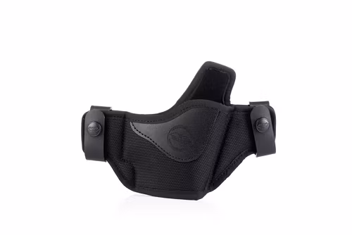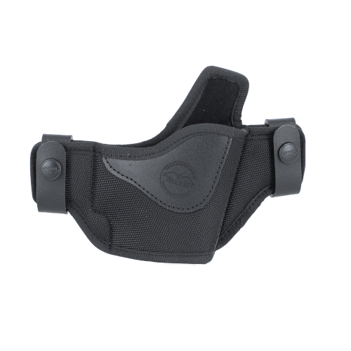 Easy to put on pancake style holster made of premium quality nylon in combination with black leather. The main body is made of sturdy, shape-holding nylon where