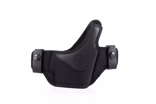 Easy to put on pancake style holster made of premium quality nylon in combination with black leather. The main body is made of sturdy, shape-holding nylon where