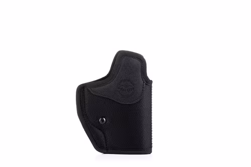 Quick gun draw holster with a wide belt loop at the back. The holster has a low cut shape enabling en ergonomic gun draw. It is made of premium quality nylon in