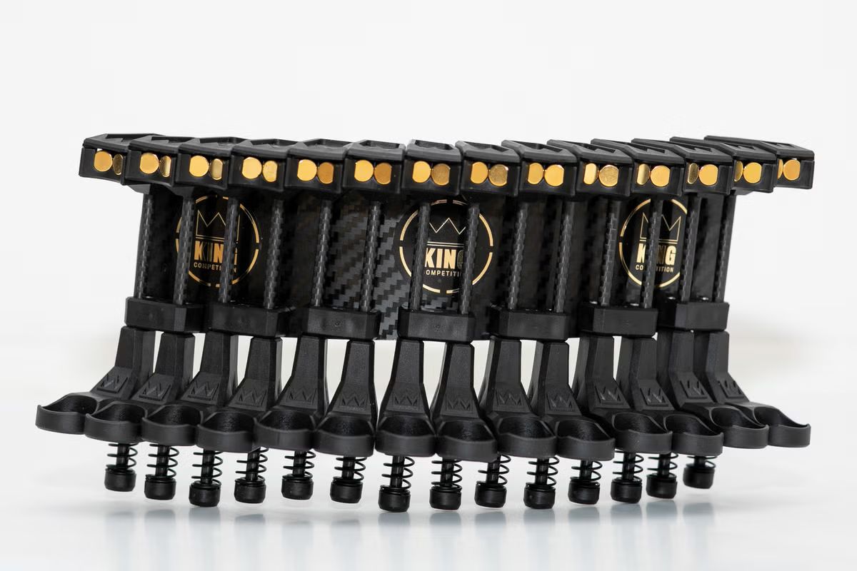 Tillverkad med kolfiberstänger istället för stål levererar King Carbon en extremt låg vikt på cirka 470–490 gram, vilket gör den upp till 50 % lättare än tidigare generationer. Den låga vikten minskar belastningen på utrustningen och ger bättre rörelsefrihet under tävling.