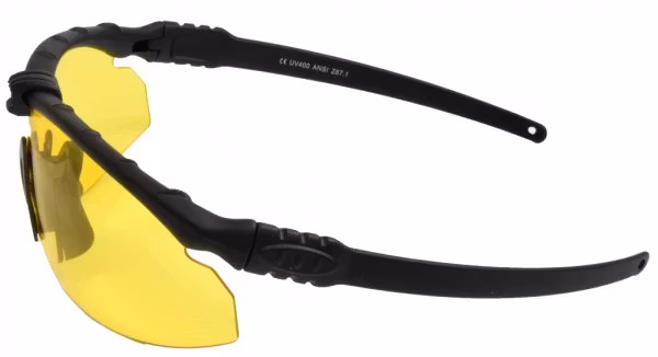 The Model VICTOR has a wide wrap-around style lens, with a flexible and durable polymer, fiber-reinforced frame. The frame’s side arms are flat and designed to rest snugly against the head, making them perfect for use under hearing protection.