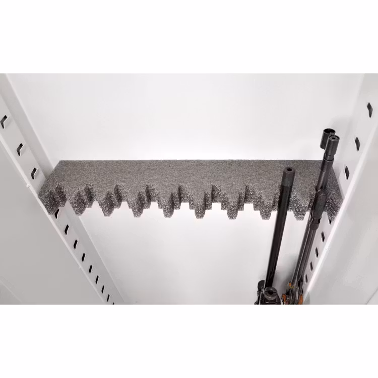 Pipstöd / vapenstöd med extra djup för gevär. Totalt 10 stycken uttag för både dubbel och enkelpipiga vapen. Enkel att fästa med dubbelhäftande tejp som ingår. Går att kapa till önskat mått samt skära ut för egen anpassning av sina personliga vapen.