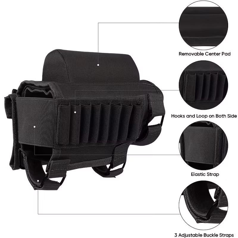 Det här är det ultimata tillbehöret för skyttar, jägare och taktiska användare som vill kombinera komfort med funktionalitet. Ett justerbart och smart designat kindstöd som förbättrar anläggningen, minskar rekylens påverkan och ger dig snabb tillgång till extra ammunition eller magasin.