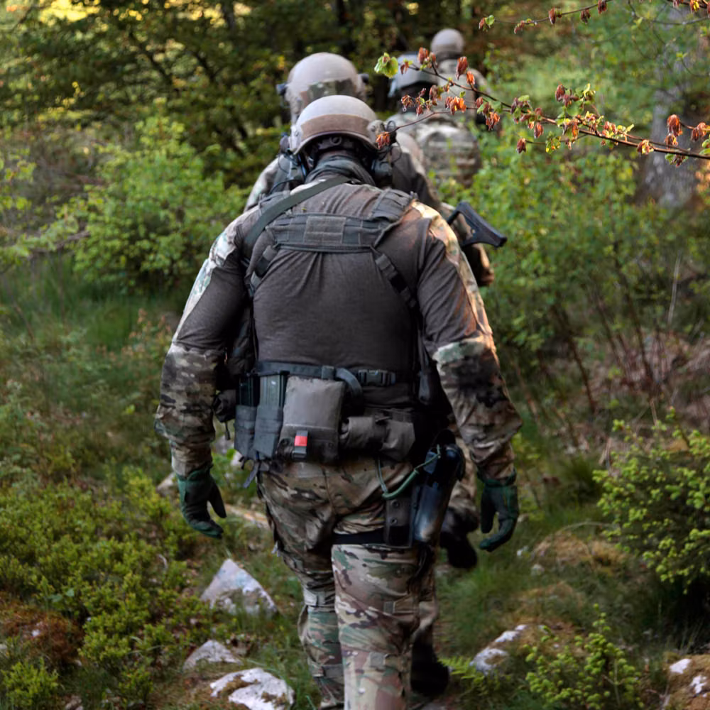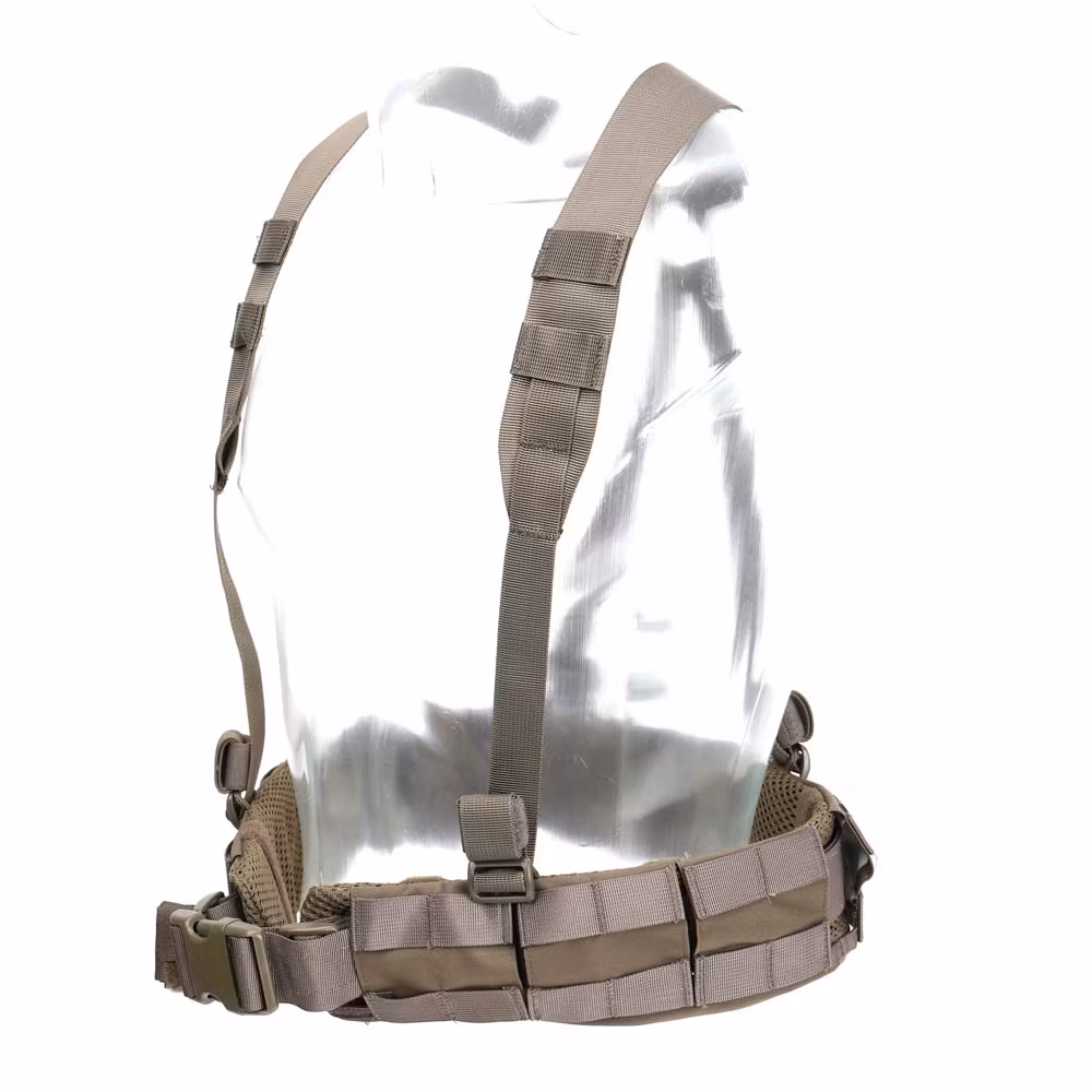 - Flexibelt monteringssystem: MOLLE-paneler med slots som möjliggör att innerbältet kan vävas in- eller utanför, beroende på behov.