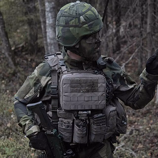 - Fullbreddsfack: Ett inre fack i full bredd som passar en radio, 7,62 eller 5,56 mm magasin eller liknande.