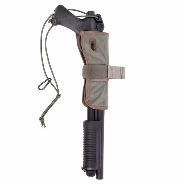 Snigel Shotgun Holder 1.0 är designad för att hålla en extra vapen, såsom en hagelgevär, nära till hands och säkert fäst på sidan av din utrustningsväst eller b