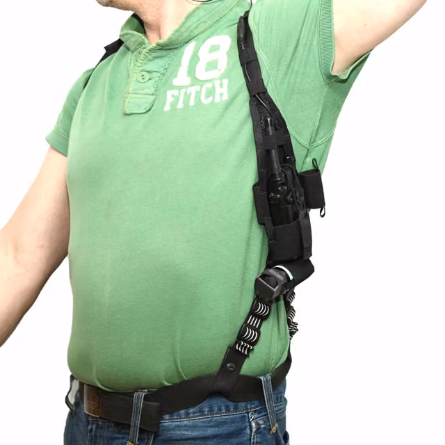 - Diskret bärsystem: Perfekt för att bära en radio, OC-spray och teleskopbatong dolt.