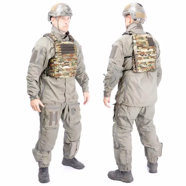 - Flexibel utrustning: MOLLE-/webbingremmar i sidorna gör det möjligt att fästa och förflytta fickor fram eller bak.