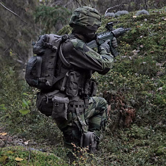 - Tillräckligt stor för att rymma 1 fältdressing, 1 tourniquet och 1 elastisk binda, eller annan personlig utrustning.