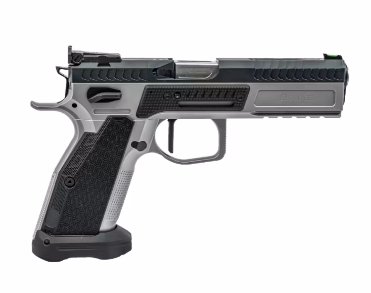 Drake Standard är en förstklassig tävlingspistol som kombinerar robust konstruktion med hög precision och pålitlighet. Med sin optiska förberedelse och single action-mekanism är den perfekt för tävlingsskyttar som söker en pålitlig och exakt pistol.