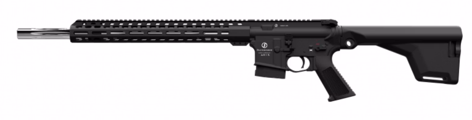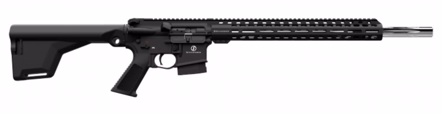 The Schmeisser AR15 Ultramatch 20" STS is a precision rifle with a match barrel and an integrated spare magazine in the stock. This rifle has a .936 free-swingi