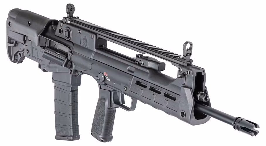 The Springfield Armory® Hellion™ represents a radically unique and innovative approach to firearms design, helping to redefine perceptions of semi-automatic 5.56mm performance. Featuring a “bullpup” configuration where the action is located behind the trigger, the Hellion 18” features a short overall length for compact handling along with enhanced ballistic performance due to its longer barrel. Ambidextrous controls work in concert with a reversible case ejection system for maximum adaptability. The result is a 5.56 that combines portability with potent performance.