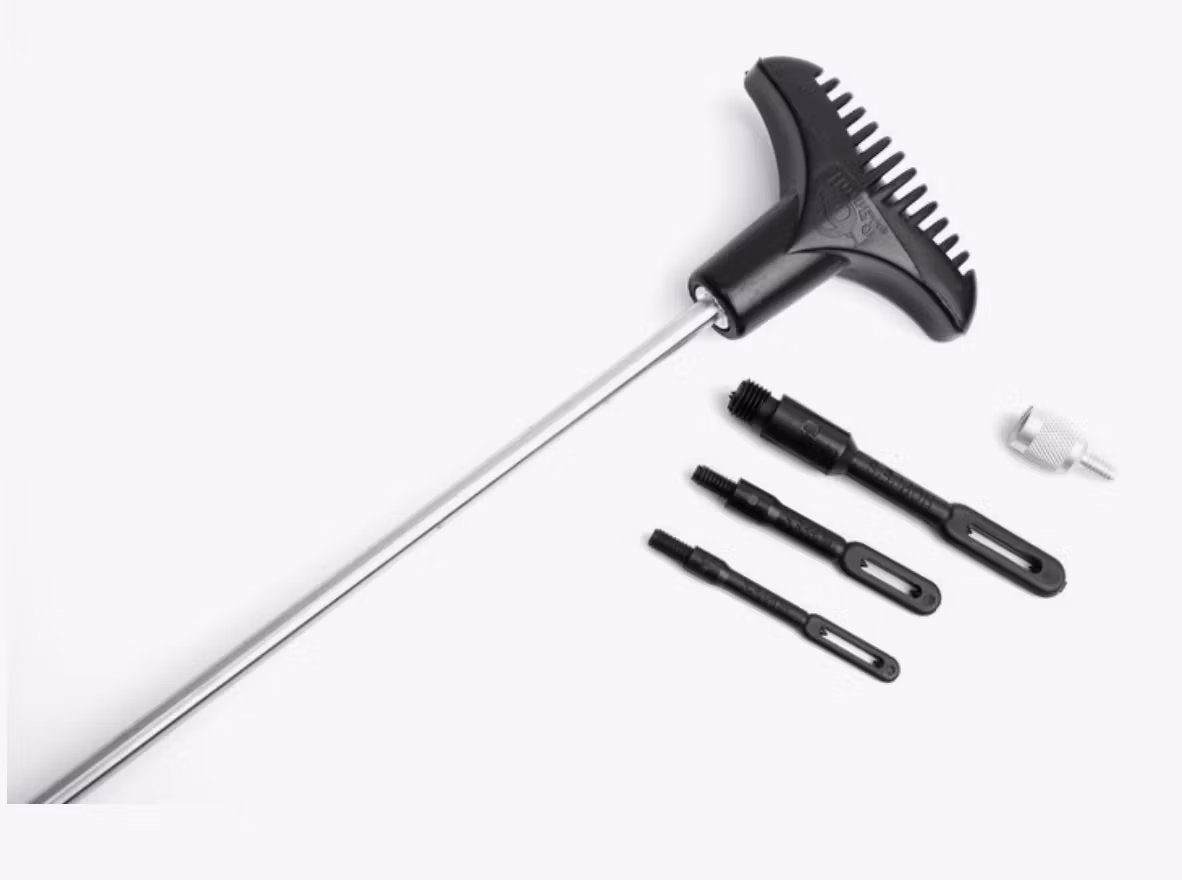 - Kullagerhandtag: Handtaget är utrustat med kullager som gör att stången roterar i takt med pipans räffling, vilket resulterar i en mycket effektiv rengöring och minimerad slitage på vapnet.