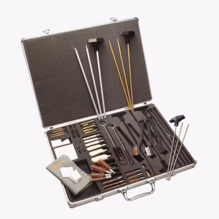 Premiumkit i aluminiumväska.The Premium Gun Cleaning Kit includes all the cleaning accessories necessary to deep clean pistols, rifles, and shotguns that are .2