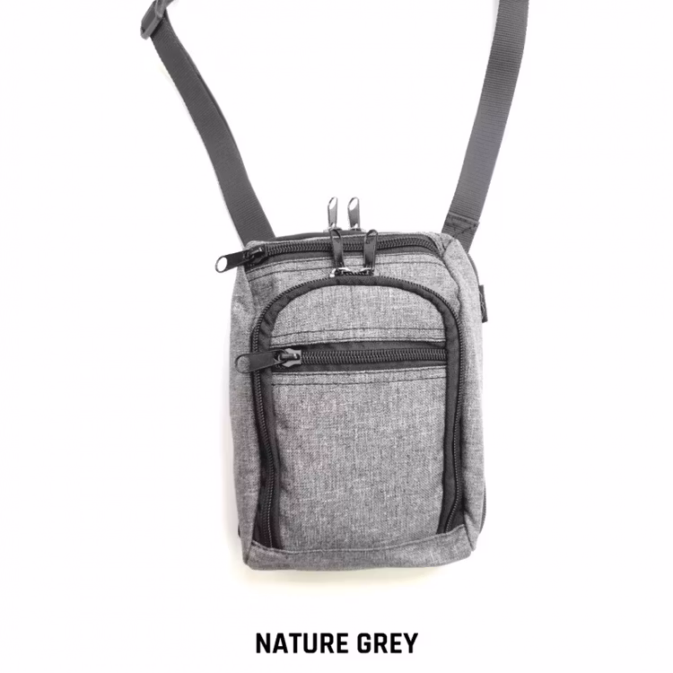 Practical shoulder bag with an adjustable shoulder strap designed for concealed gun carry. The bag features a front wallet pouch and two smaller zipper pockets.