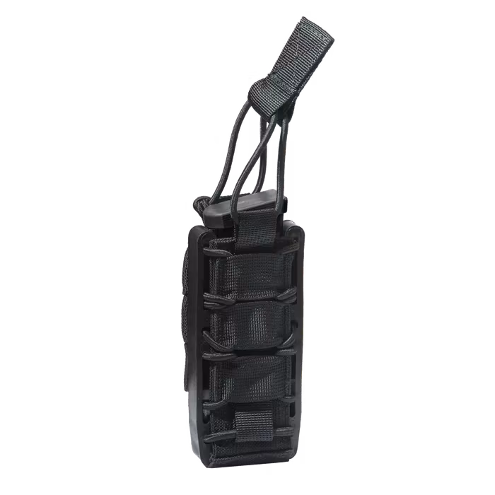 Denna singelmagasinshållare är utformad för snabb åtkomst och är utrustad med ett M.O.L.L.E.-system, vilket gör det möjligt att fästa den på taktisk utrust