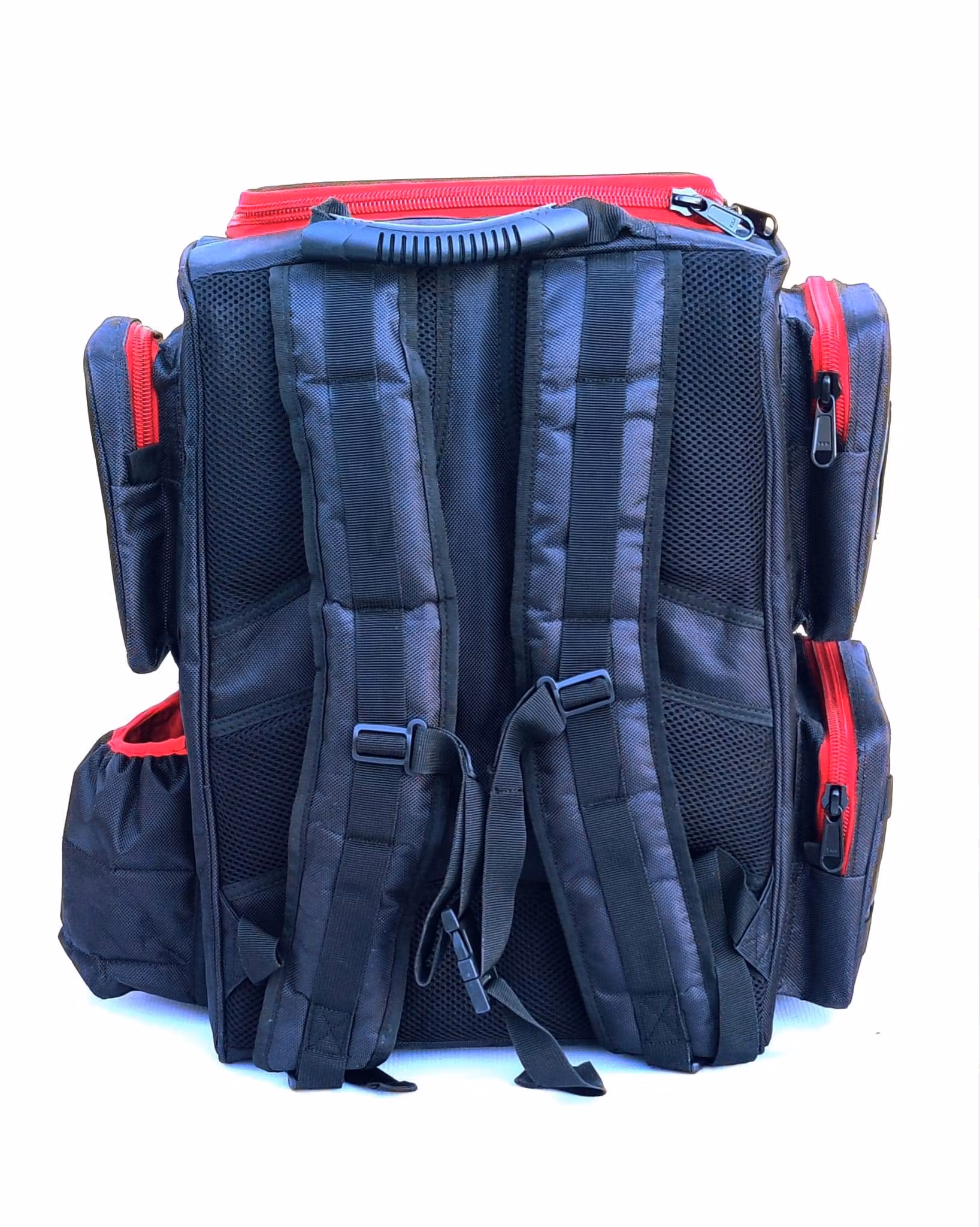 RC-tech Range Backpack är en nya generation av skjutryggsäckar. Den extremt styva metallskalkonstruktionen möjliggör maximal praktisk användning och säkerställer bästa möjliga utrymmeshantering. Med fickor på både vänster och höger sida samt en dedikerad vattenflaskhållare är den extremt praktisk. Ryggsäcken har en genomskinlig ficka för ID-brickor, samt velcro- och mollefästen och remmar för att fästa och bära en liten stol eller andra nödvändigheter. För maximal hållbarhet används YKK-dragkedjor.