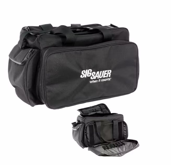 Sig Sauer Rangebag rymmer allt du behöver under skyttet. Det finns plats för flera pistoler, en urtagbar väska för ammunition, en påse för tomhylsor samt flera