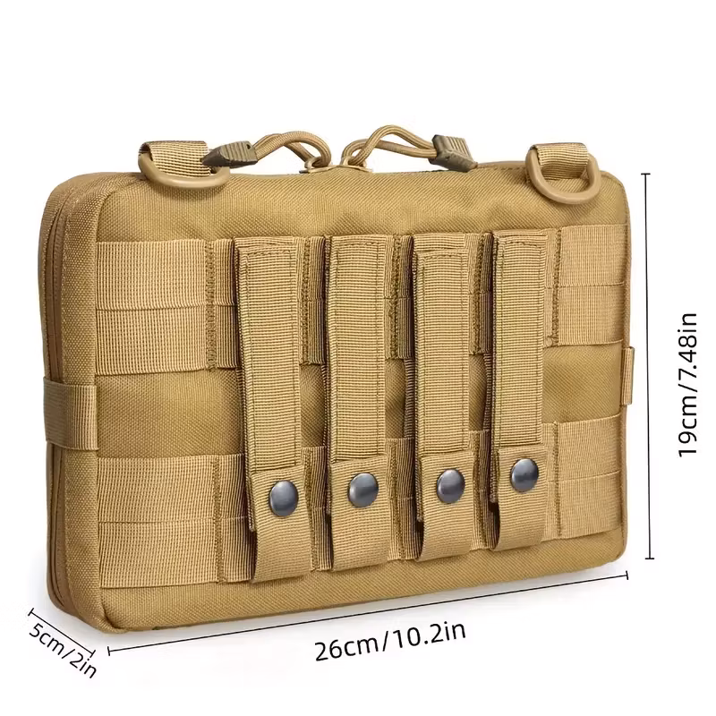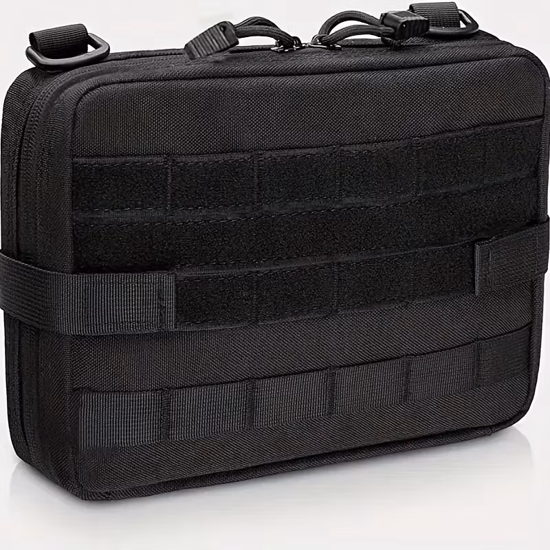 Taktisk Adminficka är en mångsidig och hållbar väska tillverkad av slitstarkt svart oxfordtyg, idealisk för jakt, fiske och friluftsliv. Fickan är Molle-kompatibel, vilket gör det enkelt att fästa den på ryggsäckar, västar eller bälten, vilket ger dig snabb åtkomst till verktyg och medicinsk utrustning. Fickan fungerar utmärkt som en EMT-organisatör för förvaring av första hjälpen-utrustning, samt för att hålla ordning på verktyg och andra nödvändigheter under utomhusaktiviteter.