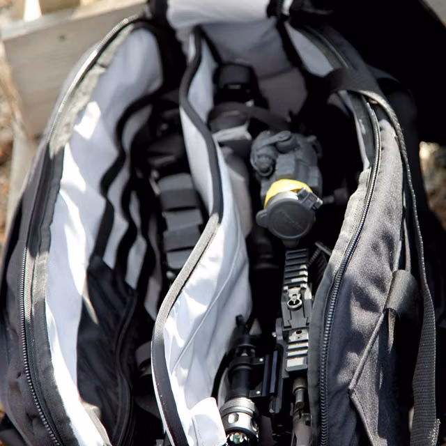 34×64 cm Dual Weapon Bag -11 är en diskret, lätt och säker väska för transport och förvaring av känslig personlig utrustning, inklusive vapen och tillbehör. Väskan är designad för att rymma och organisera två vapen, såsom en MP5 eller automatkarbin, samt magasin, radio och annan utrustning, allt i en enda lättåtkomlig enhet.